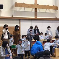 集会では節分の由来の話と紙芝居を真剣に聞いていた子どもたち。