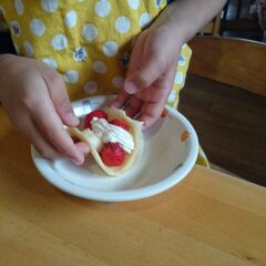 らいおん1・2組でクッキングをし、いちご餅を作りました!