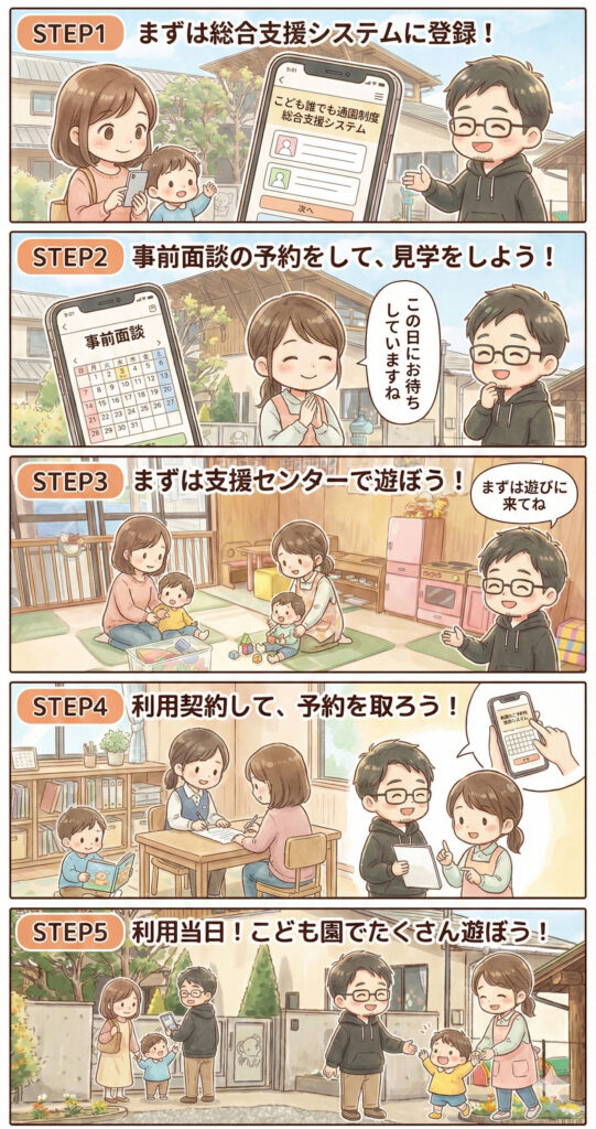 親子で支援センターに遊びに来ていただくことで、園の雰囲気や環境に触れていただき、利用契約をするかをご検討ください。